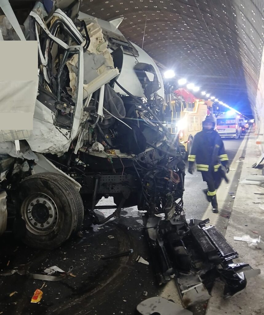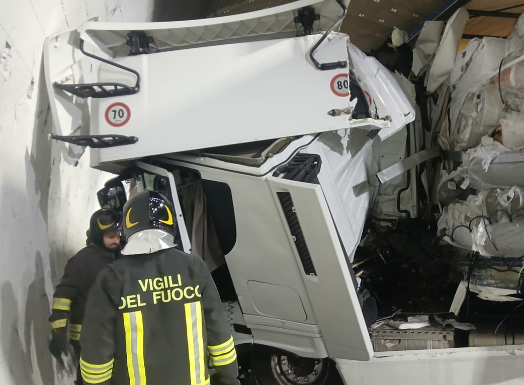 Per cause in corso di accertamento i due mezzi pesanti sono entrati in collisione in modo violento tanto da accasciare la cabina di uno dei due mezzi.