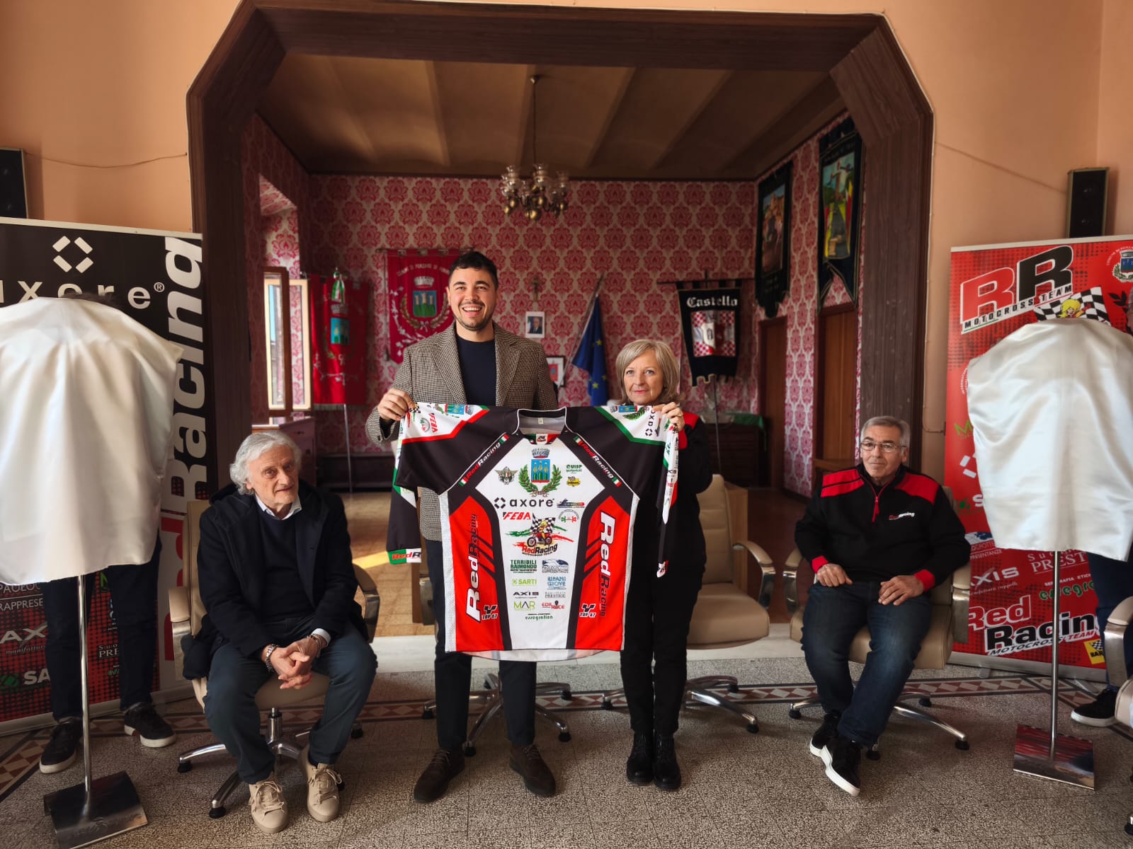 Al centro dell’evento, la presentazione della maglia ufficiale per la stagione 2026, che porterà in gara il logo del Comune di Ponzano di Fermo accanto a quelli degli sponsor sostenitori. A sugellare il momento, il gesto della Presidente del team Red Racing Daniela Aleandri che ha donato al Sindaco Diego Mandolesi la maglia ufficiale della squadra.