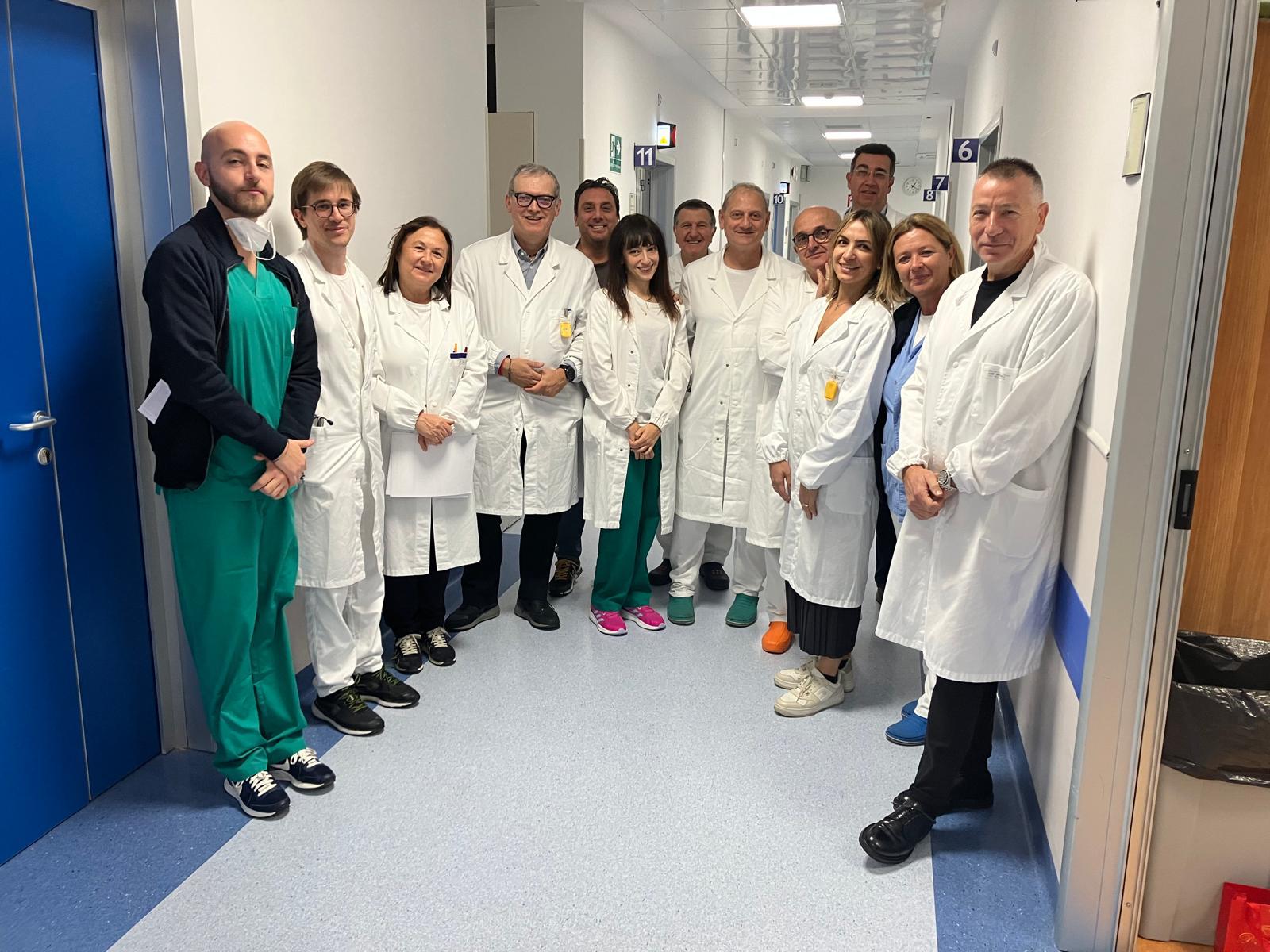 Parte del personale del reparto con la dr.ssa Paola Pantanetti e il direttore generale Ast Fermo, dottor Roberto Grinta
