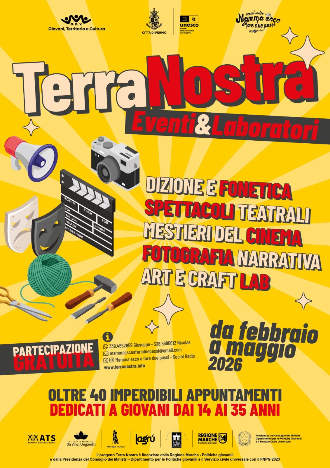 Con Terra Nostra sono attivi e verranno attivati laboratori di dizione e fonetica, fotografia narrativa (guidati dal fotografo Marco Raccichini), una residenza cinematografica e il laboratorio Sferruzzing, club di uncinetto, maglia e ricamo. In merito a quest’ultimo, Andrea Marsili, coordinatore dell’associazione “Giovani, Territorio e Cultura” ha sottolineato come i presenti alla prima lezione siano stati circa 80: «Infatti, stiamo provvedendo a cercare uno spazio più ampio per le prossime giornate in calendario» ha detto.