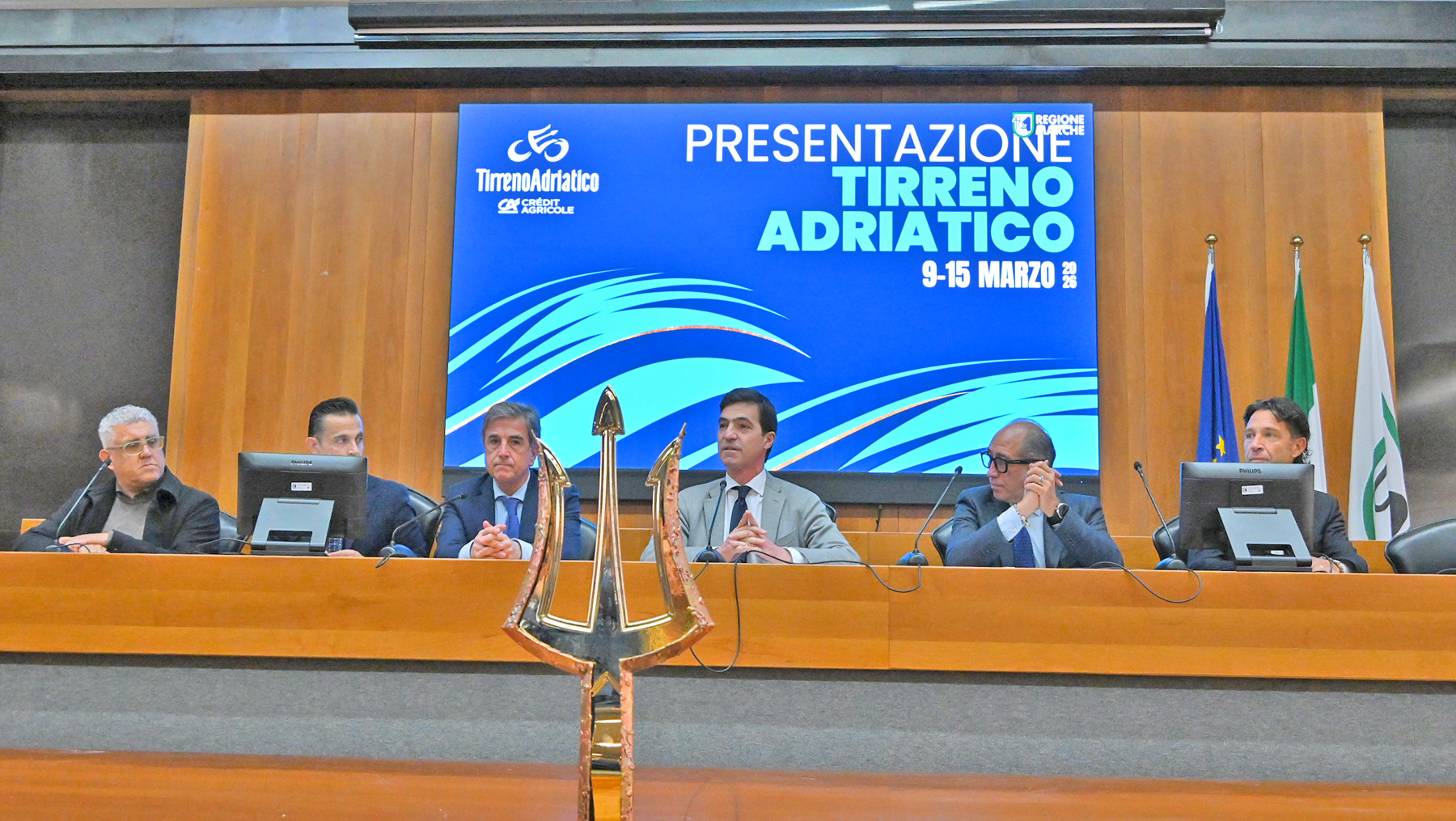 E’ stata presentata quest’oggi, presso il Parlamentino di Palazzo Li Madou di Ancona, sede della Regione Marche, la 61esima edizione della Tirreno Adriatico Crédit Agricole, in programma dal 9 al 15 marzo.
