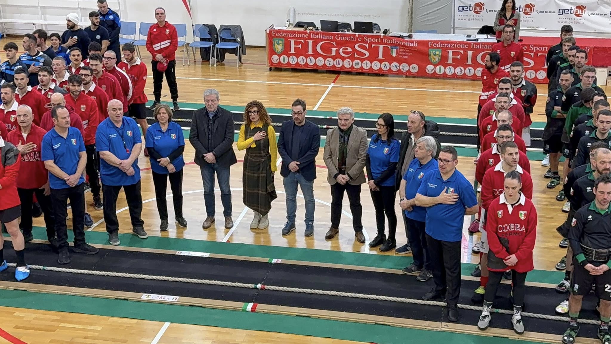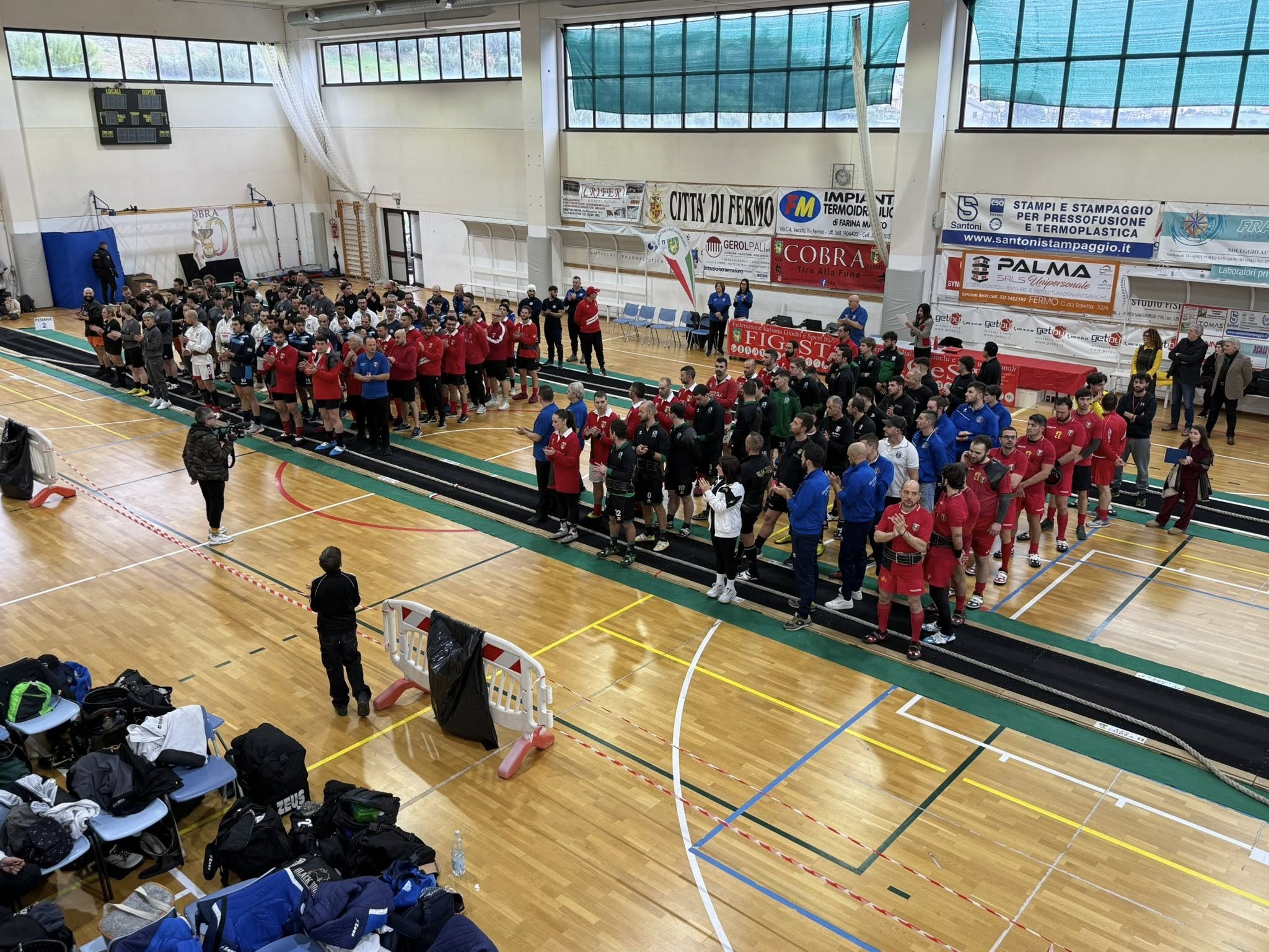 All’evento sportivo nazionale, ospitato nel centro sportivo di via Leli a Fermo, hanno preso parte Paolo Calcinaro, già sindaco di Fermo e assessore alla Salute e alle Politiche Sociali della Regione Marche, Alberto Maria Scarfini, assessore allo Sport del Comune di Fermo, Enzo Casadidio, presidente Nazionale Figest, Valeriano Vitellozzi, vice presidente vicario Figest, Catia Luciani, presidente regionale Figest Marche, ed Alfredo Dalle Luche, responsabile tecnico Nazionale Figest Tiro alla fune Indoor.