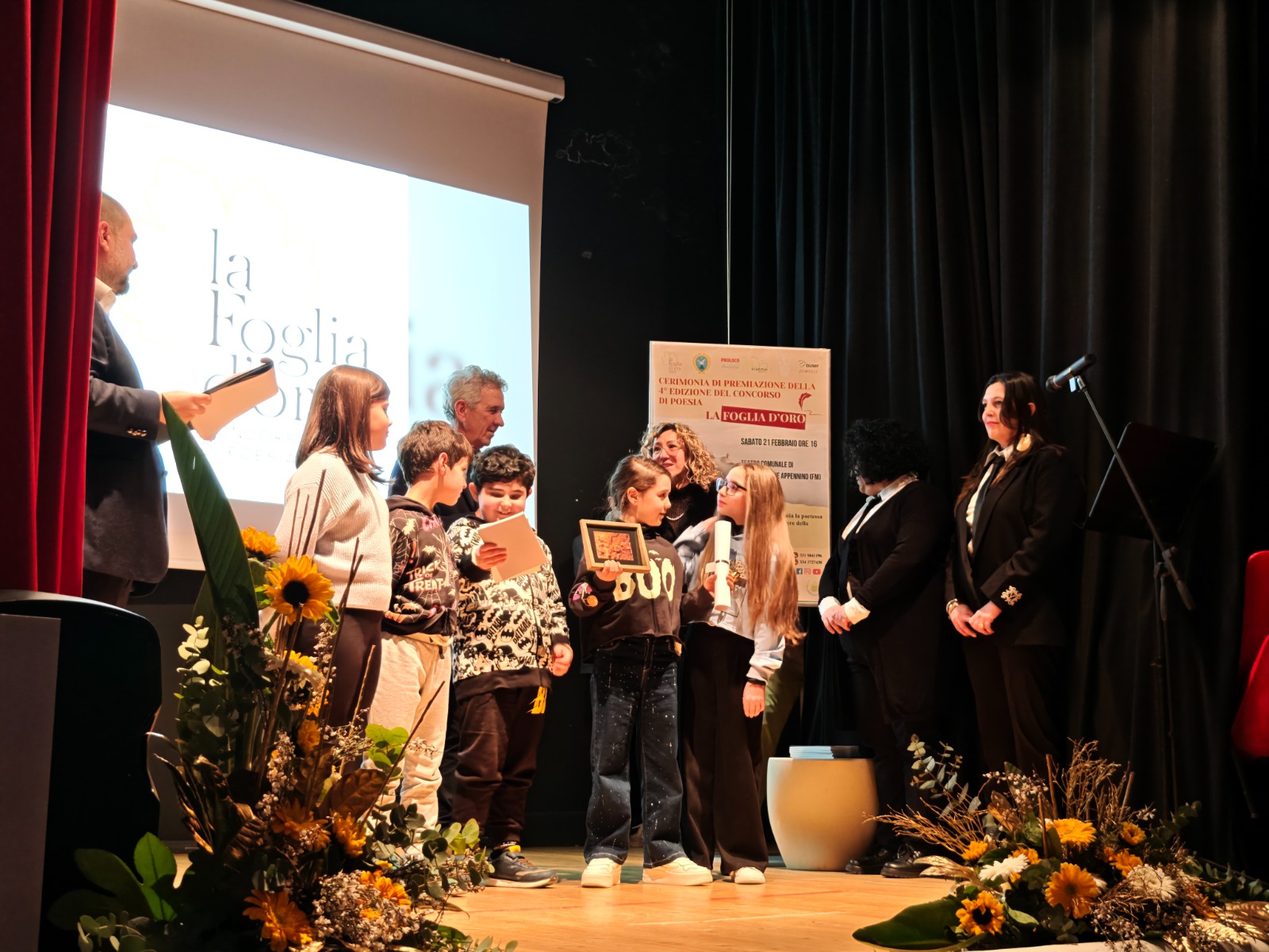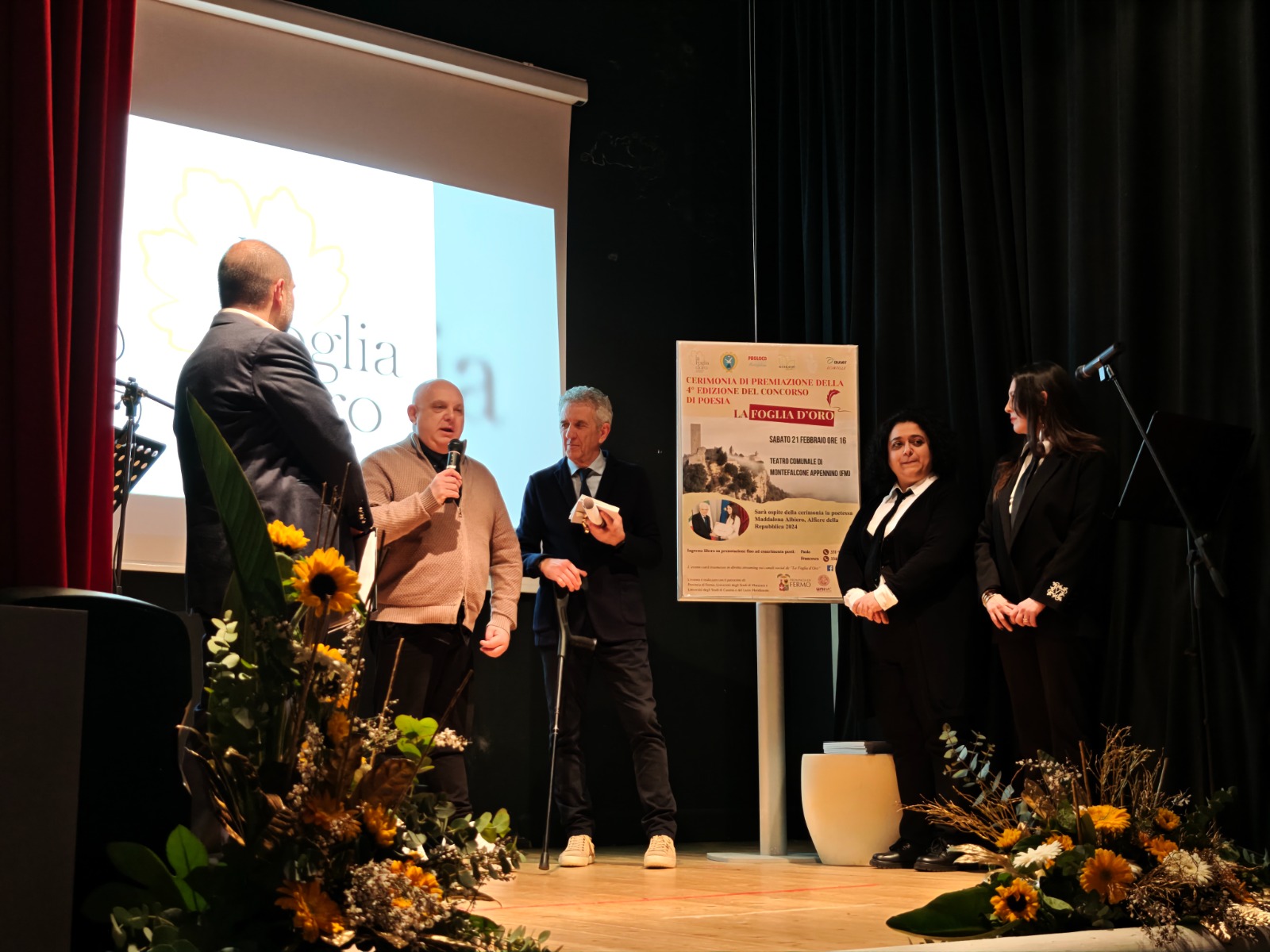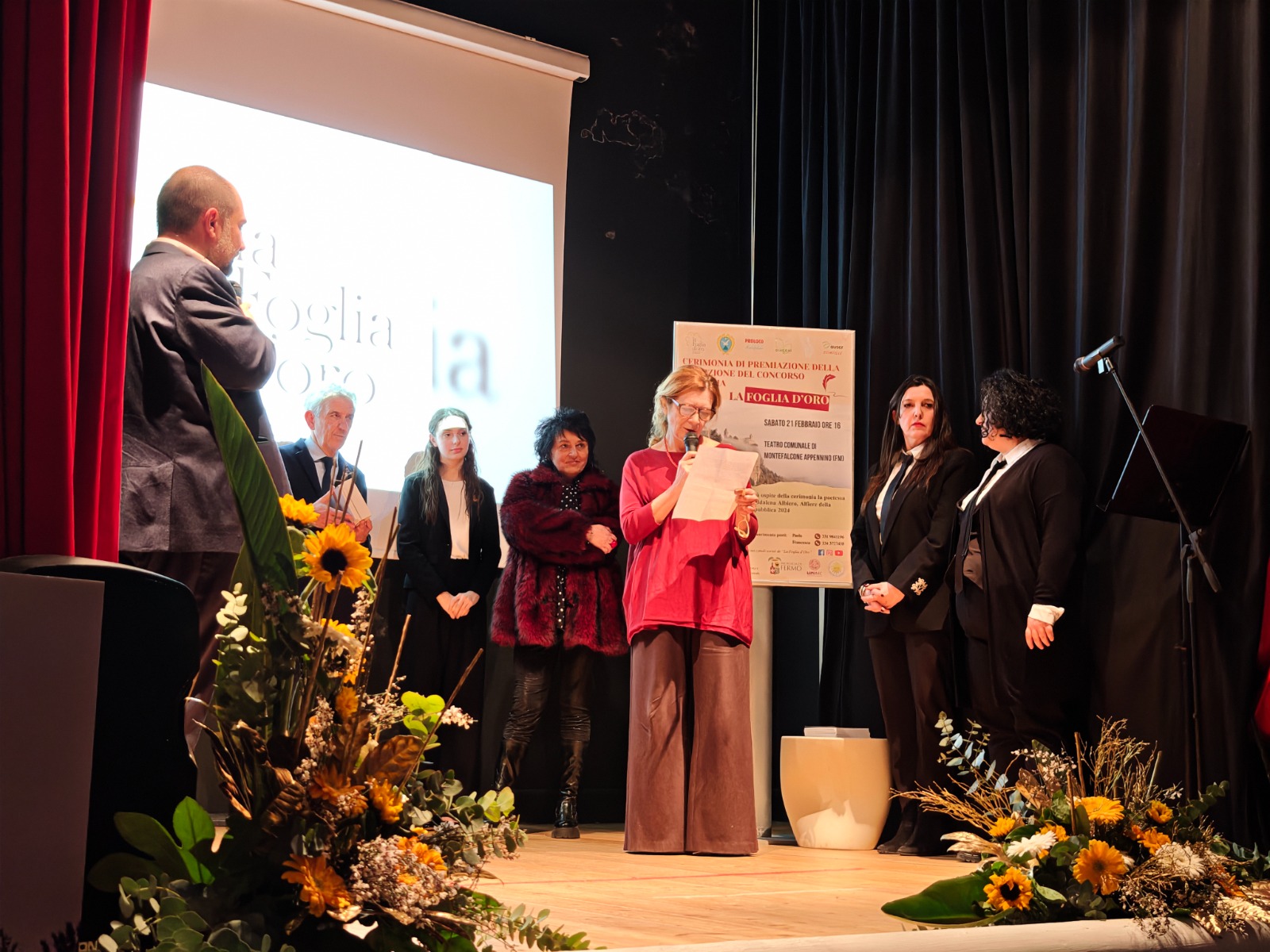 Si è tenuta nei giorni scorsi, presso il Teatro Comunale di Montefalcone Appennino, la cerimonia di premiazione della IV edizione del concorso di poesia la Foglia D’Oro. La cerimonia è stata presentata da Valerio Tomassetti, figlio di Giuseppe, ideatore ed ispiratore del concorso che ha spiegato la scelta del tema dell’anno “Contrasti” partendo dalla poesia “Italia” di Ungaretti. Dai colori “contrastanti” delle foglie d’autunno ai tanti conflitti della nostra epoca, questa parola racchiude molto del senso stesso della poesia.