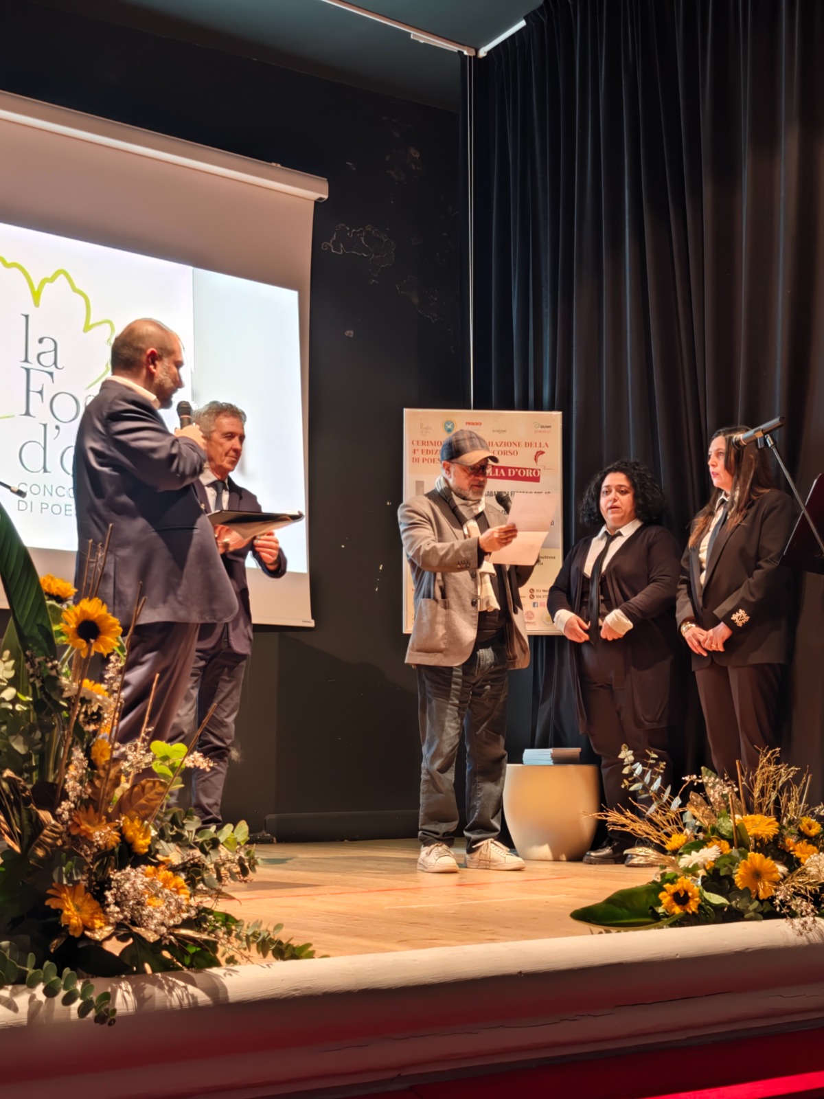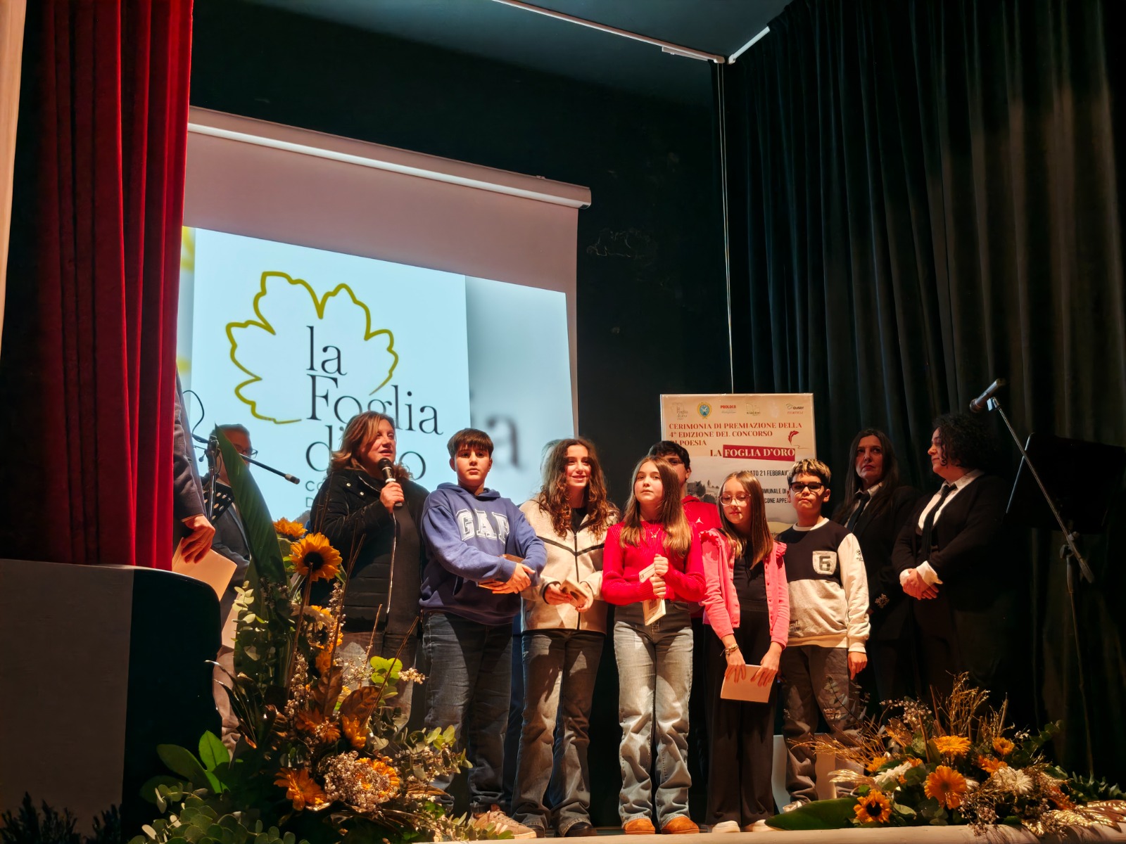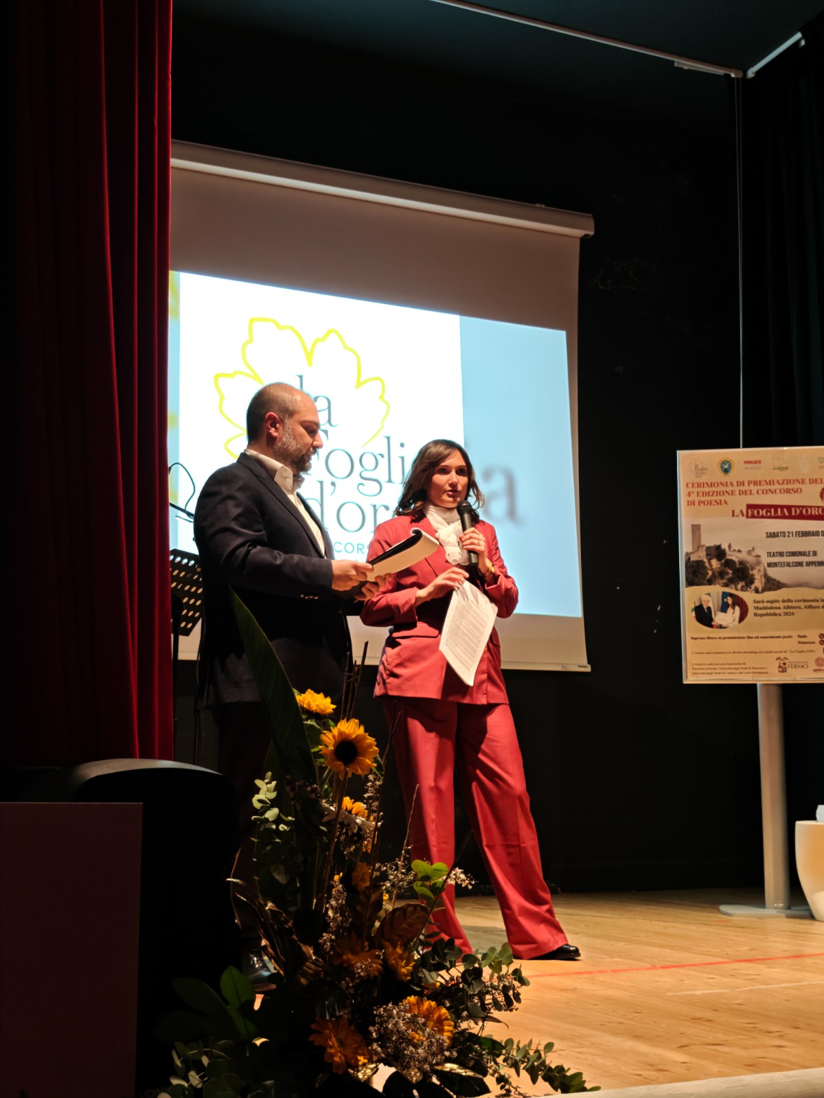 Si è tenuta nei giorni scorsi, presso il Teatro Comunale di Montefalcone Appennino, la cerimonia di premiazione della IV edizione del concorso di poesia la Foglia D’Oro. La cerimonia è stata presentata da Valerio Tomassetti, figlio di Giuseppe, ideatore ed ispiratore del concorso che ha spiegato la scelta del tema dell’anno “Contrasti” partendo dalla poesia “Italia” di Ungaretti. Dai colori “contrastanti” delle foglie d’autunno ai tanti conflitti della nostra epoca, questa parola racchiude molto del senso stesso della poesia.