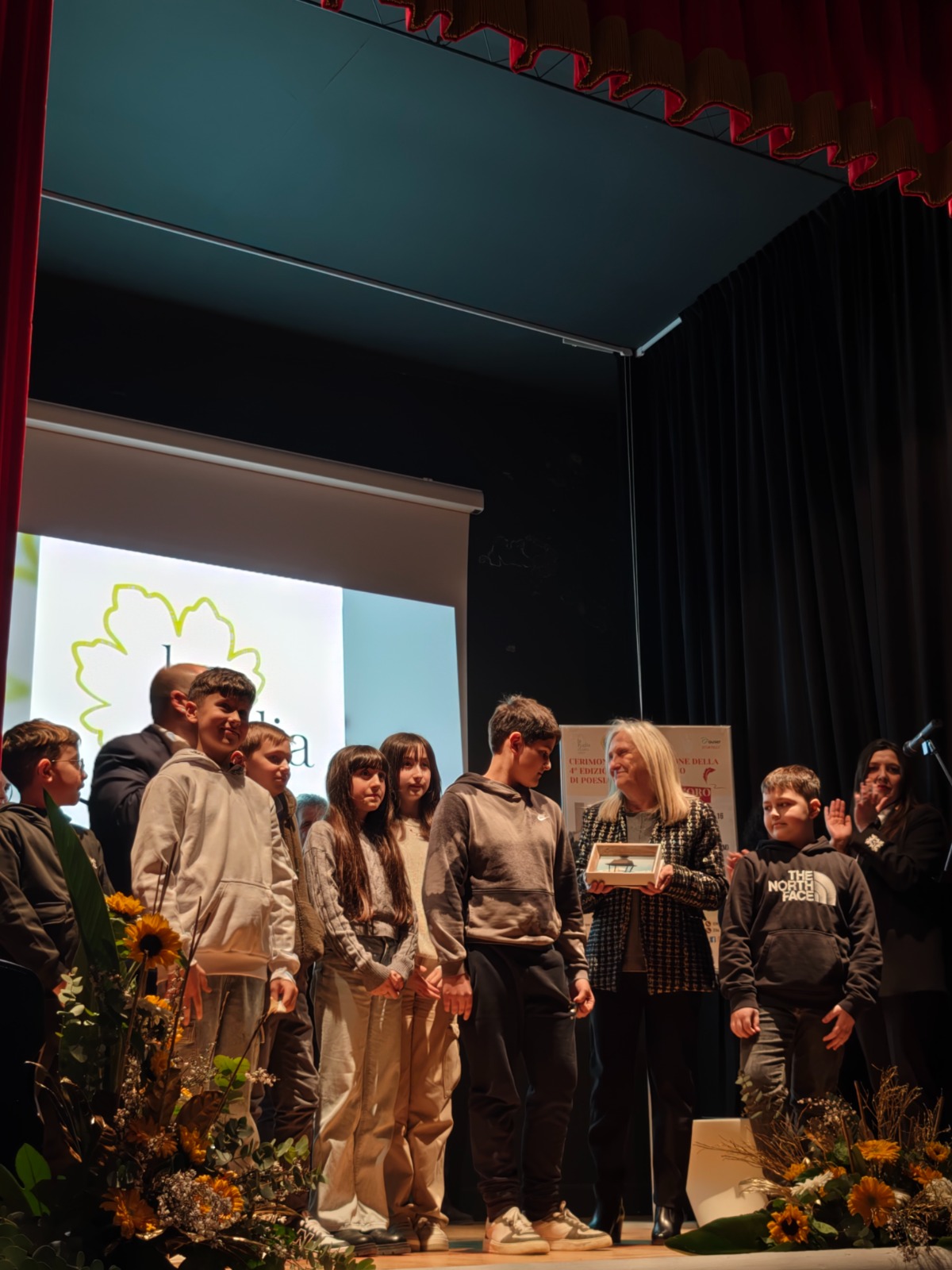 Nella categoria “Scuole” invece il primo premio è andato ad “Un ragazzo piccolo” della classe 1^B Secondaria I grado Comunanza, seguito da “L’uomo non sa” dellaclasse 5^A Primaria diSantaVittoriainMatenano e al terzo posto“In me” della classe 3^ASecondaria I grado Comunanza. I premi della giuria sono andati a “Gli sguardi dei bambini” della classe 3^B della Primaria Comunanza e a “Coraggio e paura: la sfida che cura” della classe 3^A della Primaria di Amandola. La classe 1^B della Secondaria di Comunanza ha invece convinto per la coraggiosa scelta del tema della guerra, vista attraverso gli occhi di un soldato inerme e spaesato. Nel sito ufficiale www.lafogliadoro.net saranno presto disponibili i testi delle poesie vincitrici e nel canale Youtube è possibile rivedere l’intera cerimonia.