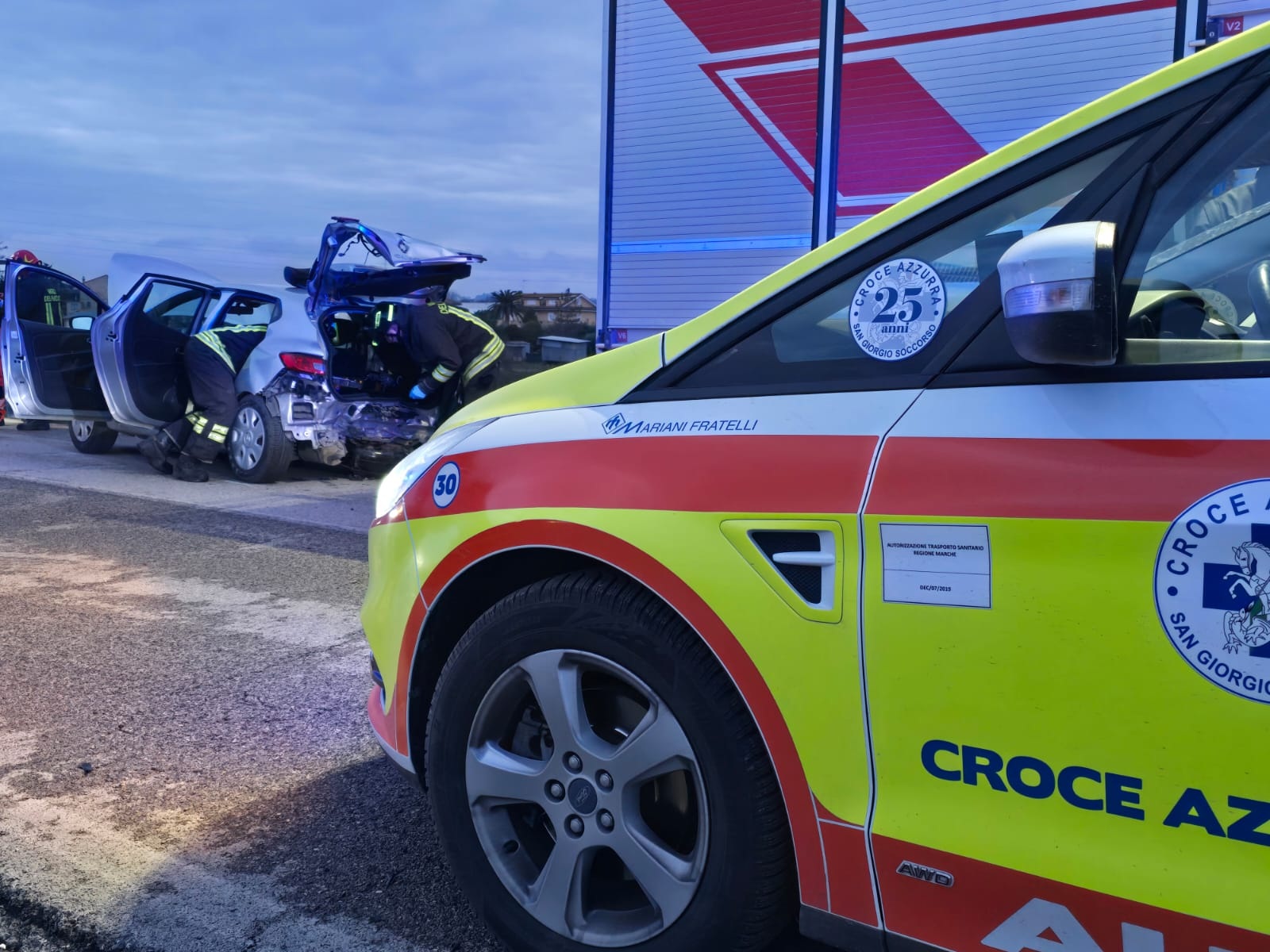 Sul posto, raccolto l’sos, la centrale operativa ha inviato due ambulanze della Croce azzurra di Porto San Giorgio e l’automedica. Con i sanitari anche i vigili del fuoco che, oltre a mettere subito in sicurezza i veicoli, hanno anche illuminato la strada per agevolare le operazioni di soccorso. Particolare lo svuotamento del serbatoio di una vettura alimentata a gpl: «Con il supporto di due unità del comando di Fermo e di due unità provenienti dal comando di Ancona, è stata effettuata la messa in sicurezza della bombola – spiegano dal 115 – mediante la combustione controllata del gas in torcia».