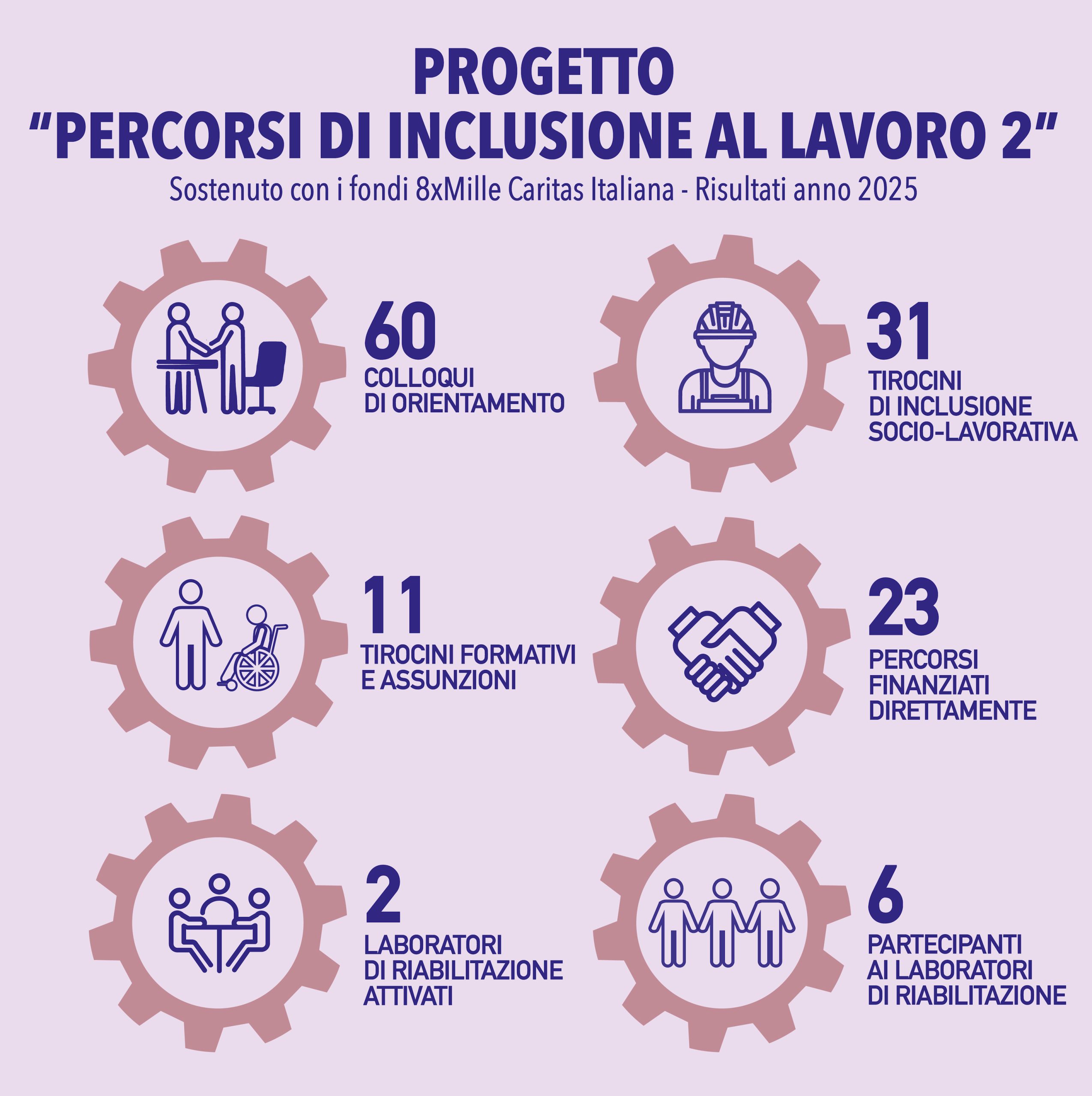 A conclusione delle attività del progetto “Percorsi di inclusione al lavoro 2”, implementato nel corso del 2025, finanziato dai fondi 8xmille della Caritas Italiana, la Caritas diocesana ha tracciato il bilancio delle attività realizzate. Il progetto è nato per offrire opportunità lavorative alle persone disoccupate, con particolare attenzione alle persone con disabilità, con difficoltà psicologiche e/o fragilità relazionali.