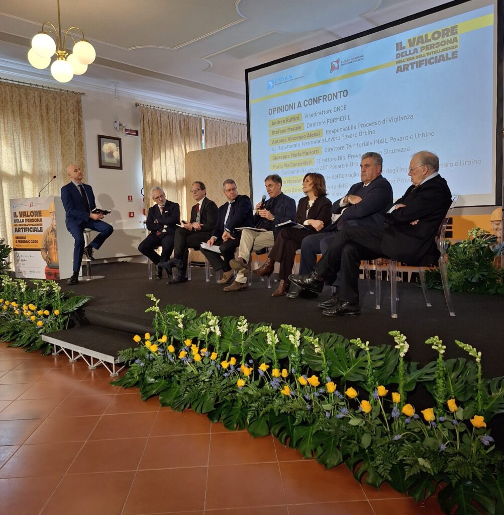 Le conseguenze di ciò che accadrà più ancora sono state al centro delle riflessioni della tavola rotonda tra i referenti nazionali delle parti sociali. Ciascuno dal proprio osservatorio e forte del lavoro che la propria sigla sta portando avanti anche all’interno degli organismi bilaterali, ha offerto una lettura che è andata a convergere sul concetto secondo il quale l’AI non sta solo “sostituendo” il lavoro umano: lo sta ridisegnando. Le aziende e le persone che imparano a usarla come strumento di supporto sono quelle che ne trarranno più vantaggio. A seguire poi c’è stata l’occasione di ribadire la fondamentale collaborazione con tutti i soggetti istituzionali sia di riferimento per il mondo bilaterale come Cnce, Commissione Nazionale Paritetica per le Casse Edili, che Formedil come ente paritetico nazionale per la formazione, la sicurezza e i servizi per il lavoro che operano sul territorio grazie a Cedam Marche ed Edilart Marche, ma anche l’Ispettorato del Lavoro che ha compiti di vigilanza per la tutela dei lavoratori, l’Inail e il dipartimento Prevenzione e Sicurezza di Ast. A corredo il punto di vista degli ingegneri e consulenti del lavoro che operano sul territorio.