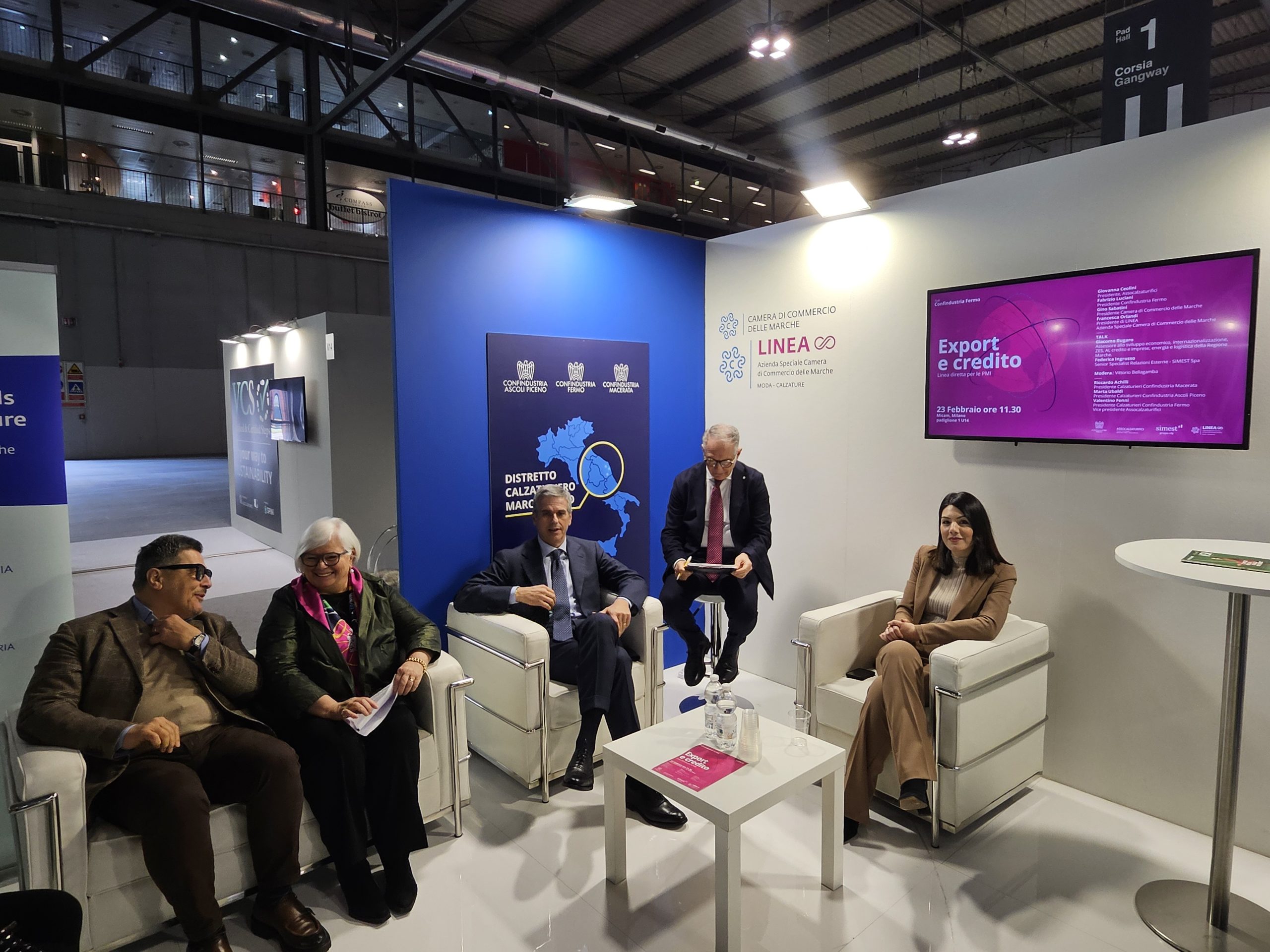 Export e credito, linea diretta per le Pmi: è stato un successo l’incontro organizzato da Confindustria Fermo, all’interno del padiglione 1 del Micam di Milano, l’incontro che ha visto protagonisti la Regione Marche, con l’assessore alle Attività Produttive Giacomo Bugaro, e Simsest Spa, con la Senior specialist relazioni esterne Federica Ingrosso.