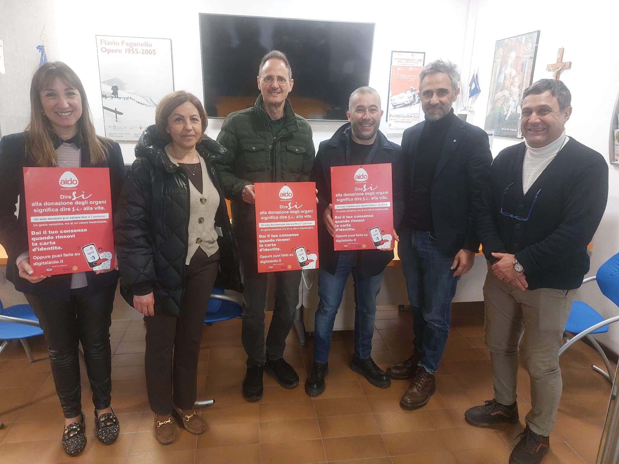 «L’iniziativa – spiega l’associazione – nasce dal fatto che a seguito della circolare n.76/2025 del Ministero dell’Interno, le carte di identità cartacee dal 3 agosto 2026 non saranno più valide, perciò fino a quella data si presume che le richieste di rinnovo del documento di identità aumenteranno notevolmente. La sezione fermana dell’Aido, consapevole dell’importanza della scelta che ogni cittadino può fare per la donazione degli organi al momento del rinnovo della carta di identità, ha deciso di impegnarsi in una campagna di informazione che coinvolgerà tutti i 40 comuni della provincia di Fermo. Il primo incontro si è avuto ieri a Porto San Giorgio. Il Comune ha prontamente risposto alla richiesta avanzata dall’Aido di un incontro che ha visto la partecipazione del sindaco Valerio Vesprini, dell’intero staff dell’ufficio Anagrafe e dei volontari Aido rappresentati dal presidente provinciale Luca Moreschini e dalla presidente comunale Mimma Paci. L’Amministrazione Comunale si è detta pronta a collaborare, permettendo l’affissione di alcuni cartelli motivazionali forniti dall’associazione Aido, che invitano il cittadino a dire sì alla donazione. Il personale amministrativo dell’ufficio Anagrafe ha avuto la possibilità di approfondire il tema della donazione degli organi in modo da poter essere di supporto al cittadino nel momento di esprimere la propria decisione nel merito della donazione degli organi».